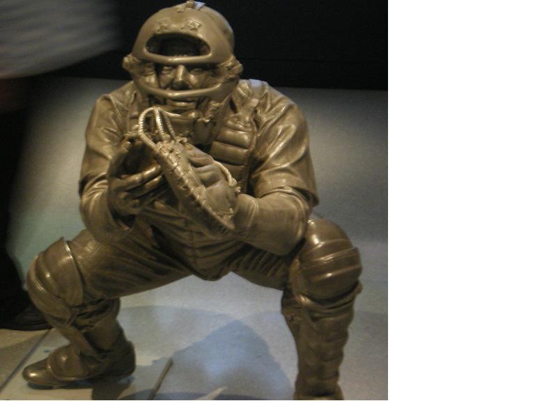 Yogi Berra, el legendario cátcher nos saludó cordialmente mientras admirábamos su estatua de bronce luciendo al centro del museo. Igualmente este marco histórico cuenta con ciento de pelotas firmadas por peloteros que